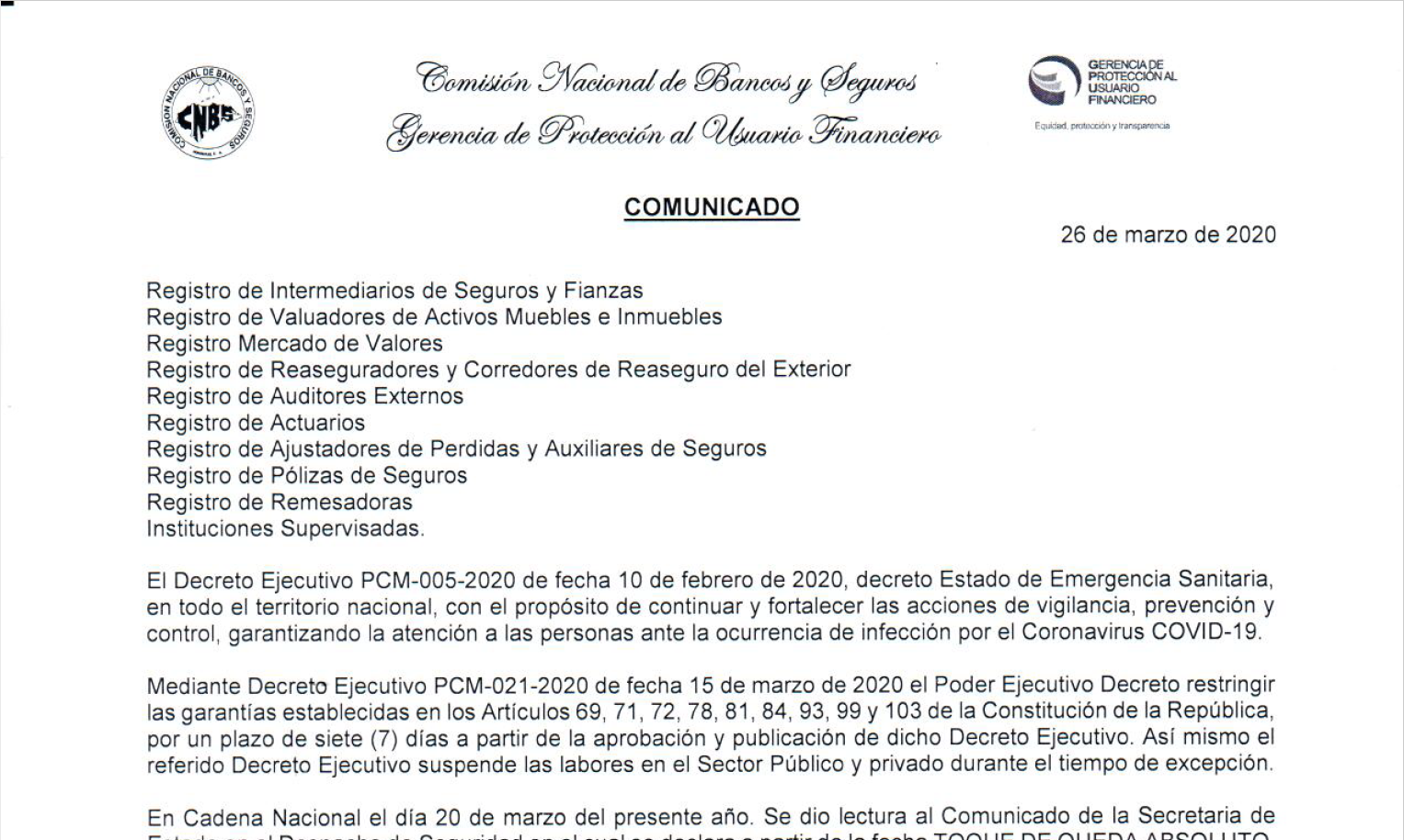 Comunicado Intermediarios de Seguros