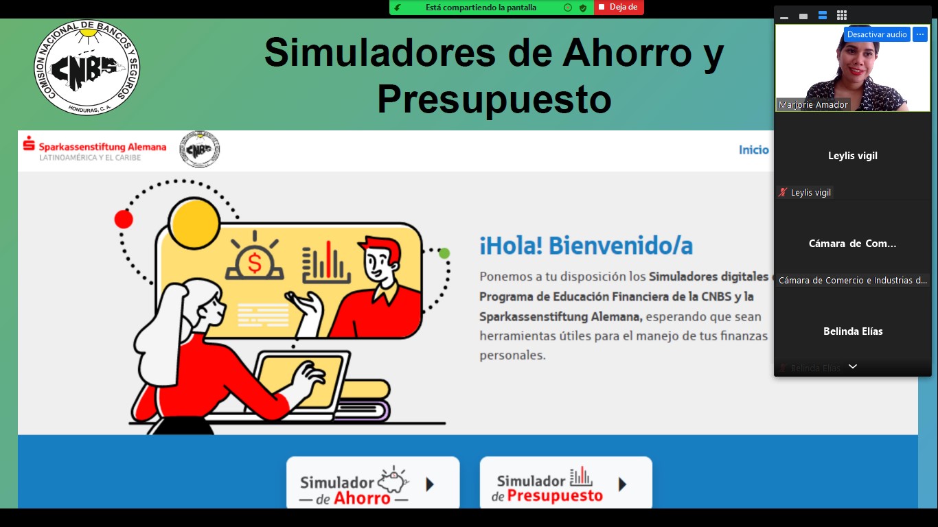 Cabe mencionar que se promocionó los cursos que actualmente están habilitados en el Aula Virtual de la CNBS, los Simuladores de Ahorro y Presupuesto, así como el funcionamiento de las APP “Yo y Mis Finanzas» y “Conoce y Compara», siendo esta última explicada por el Ing. Roberto Gómez del Departamento de Disciplina de Mercado, Transparencia y Educación Financiera.