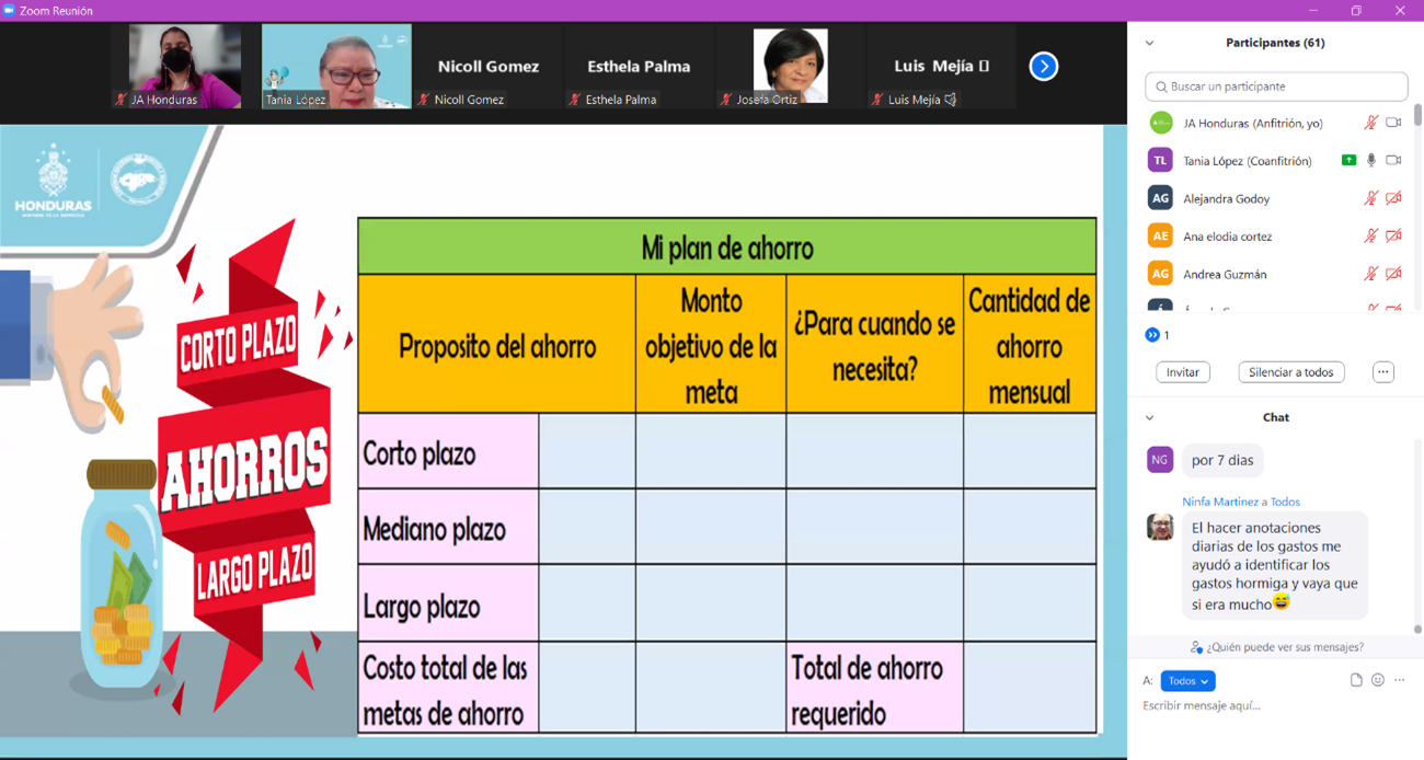 El webinar estuvo a cargo de la Lic. Tania López, Especialista de Educación Financiera de la Gerencia de Protección al Usuario Financiero.