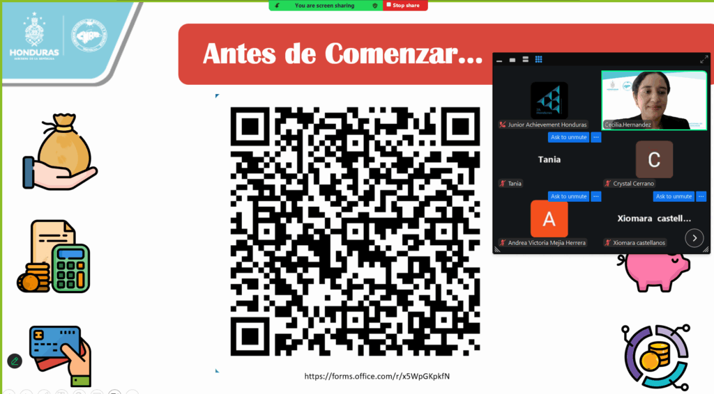 Finalmente, se les motivó a autocapacitarse mediante los 14 cursos que, actualmente, están habilitados en el Aula Virtual de la CNBS; también se les explicó el funcionamiento de las APP’s “Conoce y Compara” y “Yo y Mi Dinero”, Simuladores Digitales y el curso a través de WhatsApp.
