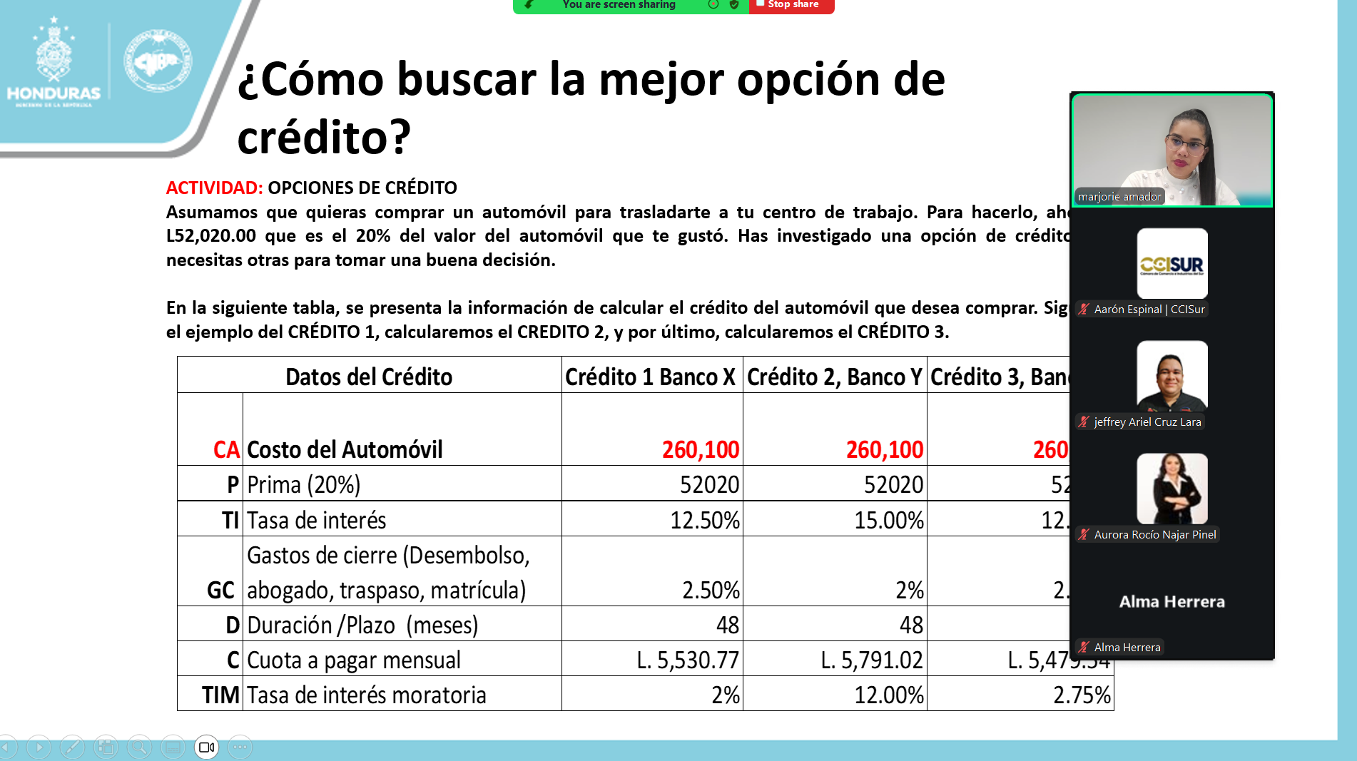Finalmente, se agradeció la participación de la CNBS en dicha capacitación impartida por la Licenciada Marjorie Amador y el Licenciado Luis López, de la Gerencia de Educación e Inclusión Financiera y Género.