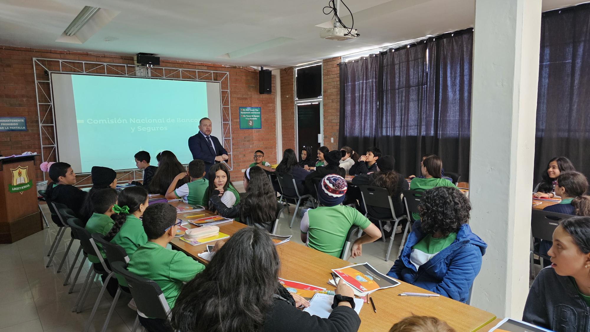La Comisión Nacional de Bancos y Seguros (CNBS), continuando con el cumplimiento de su deber institucional, el pasado 02, 04 y 11 de febrero de 2026, brindó de manera presencial, las capacitaciones “El Club del Ahorro”, “Ahorro y Plan Financiero” y “Mi Emprendimiento” a niños(as) estudiantes de la Liberty School, contando con una asistencia de 125 personas.