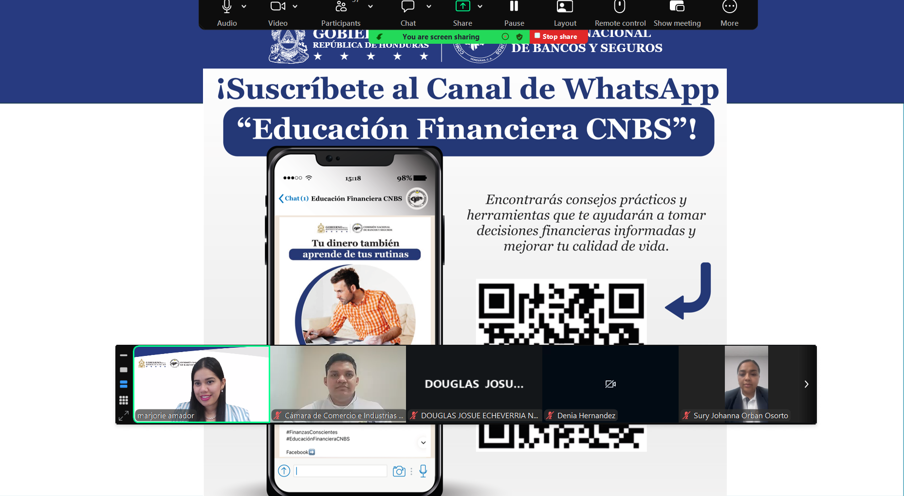 En el marco de las acciones orientadas a fortalecer la transparencia y la toma de decisiones informadas, la Comisión Nacional de Bancos y Seguros, desarrolló dos jornadas de capacitación de manera virtual sobre los temas “Procedimiento Administrativo de Atención a Reclamos” y “Contratos”, dirigidas a socios(as) de la Cámara de Comercio e Industrias del Sur y de Atlántida.
